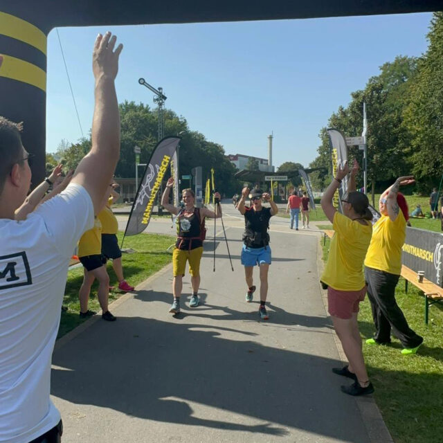 Vielleicht weil man schon ein wenig verrückt sein muss, um so etwas zu probieren und man als Verrückter weiß, wie es ist, sich nicht willkommen zu fühlen. Vielleicht, weil sich unter den Teilnehmern viele mit einer krassen Geschichte finden, von Traumata, Verlusten, riesigen Gewichtsverlusten, schweren Krankheiten, harten Kämpfen und diese Menschen genau wissen, wie wichtig die gegenseitige Unterstützung ist. Vielleicht, weil eine solche Grenzerfahrung einfach zusammenschweißt. Vielleicht, weil es doch irgendwie immer der gleiche Haufen ist, der sich all-Samstaglich versammelt. Alle für sich besonders, mit Eigenheiten, liebenswerten Seiten, Schrullen und ihren ganz eigenen Geschichten, aber immer bereit, auch den letzten Teilnehmer nach über 30 Stunden noch im Ziel zu feiern.