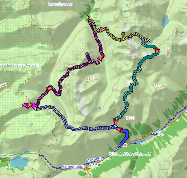 Es ist nass und kalt draußen, Winter halt. Wir sitzen am warmen Ofen und planen den Sommer in den Bergen. Brenta ist die erste Idee, ein Teil des Bocchette Wegs. Ich lese nach. Tolle Landschaft mit Leitern und superschönen Aussichten. Ich mag Leitern, wirklich. Als elementarer Bestandteil von Haus- und Handwerksarbeiten unverzichtbar. Aber im Sommer in den Bergen? Anstehen und viele Leitern? Nein, eher nicht. Die Alternative: Das Verwall. Durch das netzartig ausgebaute Wegenetz gibt es zahlreiche Möglichkeiten von Hütte zu Hütte zu wandern. Schnell ist eine Abfolge mit einigen Gipfeloptionen gefunden. Besonders die letzte Etappe bietet mit dem Ludwig-Dürr-Weg einen tollen, interessanten Weg. Für die anderen Etappen bleibt da eine gewisse Skepsis. „Ist ja eigentlich nur wandern“. Es kam anders.