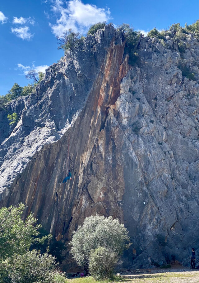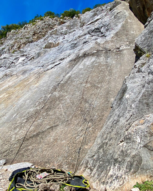 Im ersten Sektor „Cava Rossa“ hat es im Winter einen Felssturz gegeben, sodass dieser rote Fels aktuell offiziell gesperrt ist. Für Einheimische scheint diese Sperrung nicht zu gelten, denn viele Kletterer bücken sich am Wochenende unter der Absperrung hindurch, um an den roten Kalkfelsen den Tag zu verbringen.