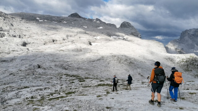 Unser heutiges Ziel ist der Berggipfel Sulzfluh mit 2817 Meter über dem Meer. Mit leichtem Tagesgepäck und bei angenehmer Witterung begeben wir uns auf den Weg. Nicht weit von der Tilisunahütte entfernt amüsieren wir uns über zwei Murmeltiere, die süß miteinander spielen. Der Wanderweg führt über das Sulzfluhplateau. Die Landschaft ist von Schiefer und Kalkstein geprägt. Am Gipfelkreuz angekommen, werden wir mit einem 360-Grad-Panorama belohnt. Anschließend folgt das obligatorische Gruppenbild. Zwei Alpendohlen bleiben in unserer Nähe, während wir uns ausruhen. Auf dem Rückweg wird es wärmer, die Sonne hat sich endlich durchgesetzt. Wir genießen die Zeit am Nachmittag, indem wir etwas Leckeres essen, in der Sonne liegen, lesen, einen kleinen Spaziergang oder Yoga machen.