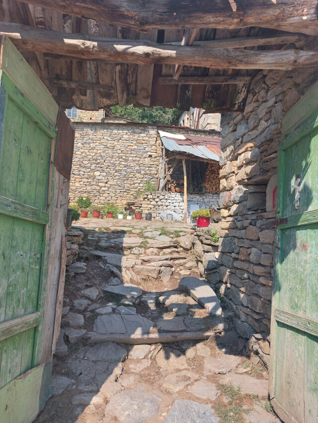 Wir haben nicht so viel Zeit und haben uns daher für den südlichen Teil des Trails entschieden. Ausgangspunkt ist das Hochland von Gora im Bergdorf Shishtarec. Der erste Trekkingtag belohnt uns mit Panoramablicken über weitläufige Wiesenlandschaften. Im Hochsommer ist es hier sehr heiß, doch oberhalb der 2.000 m Marke ist es erträglich. Im Bergdorf Caje finden wir Unterkunft bei einer sehr netten Familie, die uns herzlich willkommen heißt.