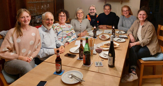 Zurzeit sind wir zu acht, die sich um die Zusammenstellung, das Schreiben, das Sammeln von Artikeln und Fotos, das Motivieren anderer Sektionsmitglieder zum Schreiben, neue Ideen und Themen sowie das Korrekturlesen für unsere zweimal jährliche Ausgabe von DAVon kümmern. So hat sich über die Jahre in wechselnder Besetzung das kleine A5 Heft „Mitteilungen“ in schwarz-weiß mit grünem Cover zum größeren A4 zunächst noch in schwarz-weiß, dann zum farbigen „DAVon“ und letztendlich zum digitalen Heft entwickelt. Auch wenn unsere Arbeit weitestgehend online erfolgt, ist uns der persönliche Austausch sehr wichtig. So treffen wir uns im Frühjahr und Herbst, um das neue Heft zu besprechen und im Januar einfach nur zum Quatschen, natürlich gibt es immer etwas Leckeres zu essen und zu trinken.