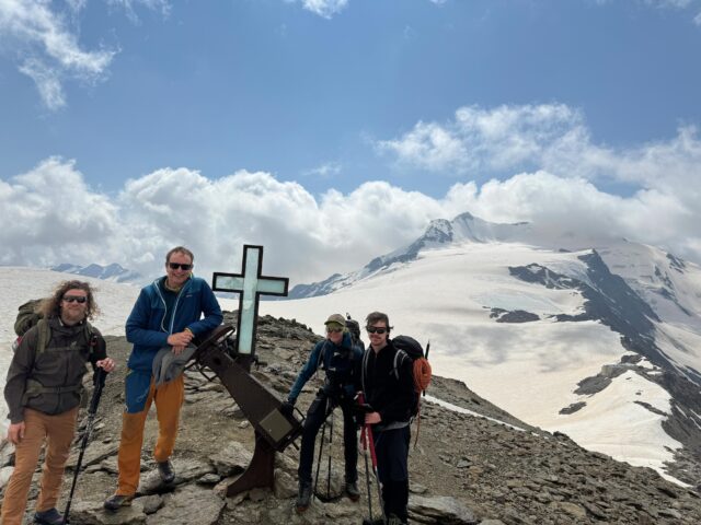 Am letzten Tag konnten wir richtig ausschlafen und starteten erst gegen 9 Uhr in Richtung Suldenspitze (3376 m), zur letzten Gipfel- und Gletscherüberschreitung unserer Tour. Wir waren alle inzwischen so gut eingelaufen, dass uns diese Tour (fast) zu kurz und zu leicht vorkam. Anschließend ging es mit herrlichem Blick auf den Ortler und die Königsspitze zurück zur Suldenbahn. Beim Ausstieg konnte Marcel dann auch seine GoPro wieder in Empfang nehmen, die aufmerksame Berggeher bereits am Freitag der vorhergehenden Woche abgegeben hatten. Da keinem von uns der Sinn nach schneller Auflösung der Gruppe stand, haben wir die herrliche Kurswoche mit einem leckeren Apfelstrudel und dem abschließenden Besuch des Messner Mountain Museum Ortles abgeschlossen. Am nächsten Tag absolvierten Marcel und Peter sogar noch den Hoachwool-Klettersteig im Schnalstal. Marcel meisterte den ganzen Steig, inklusive der recht knackigen F-Stelle, barfuß. Das hatte er sich bei der Gletschertour dann doch nicht getraut.