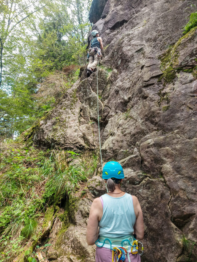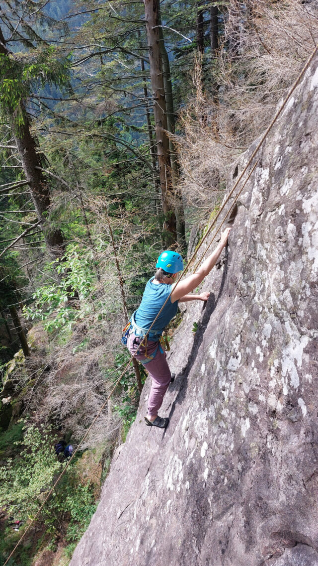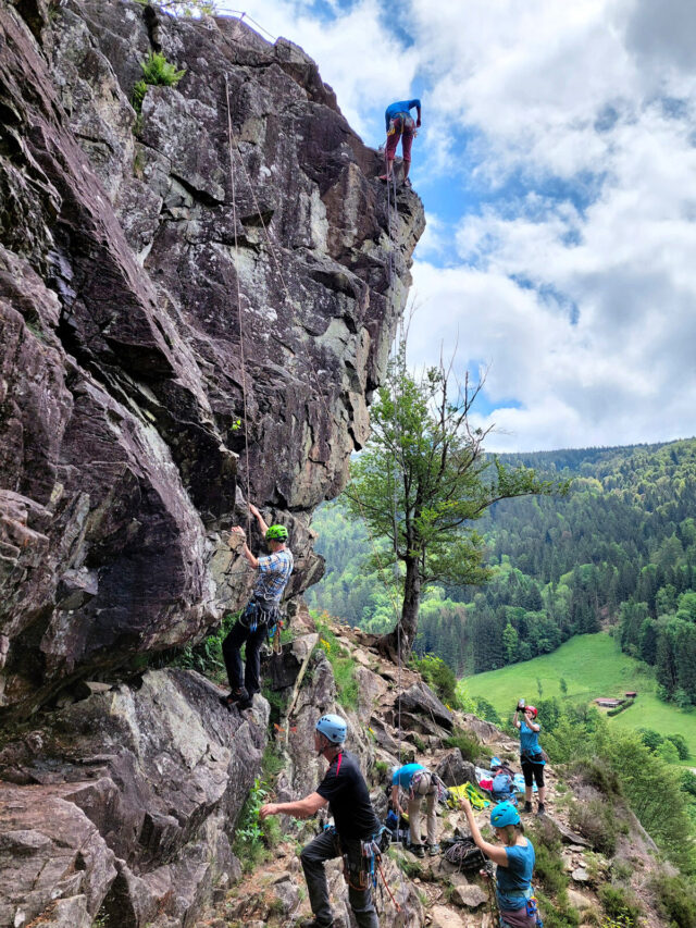 „Vom 1. bis 8. Juni 2024 waren wir auf einem von Karl und Michael organisierten Klettercamp, das uns diesmal nach Oberried im Schwarzwald führte. Der Schwarzwald, nach dem Erzgebirge das dritthöchste Mittelgebirge Deutschlands, bietet hunderte von Klettergebieten, darunter so imposante Sektoren wie den Battert, den Karlsruher Grad und den Feldberg. Wir hatten uns für den Südschwarzwald entschieden, der wegen seines außergewöhnlich warmen und sonnigen Klimas für Klettercamps geradezu prädestiniert ist.