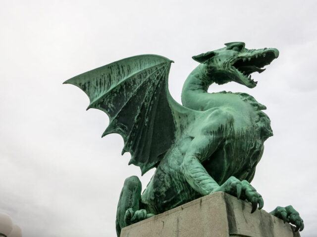 … speit Feuer und schaut von oben auf mich herab. Nein, ich habe keine Angst, denn er ist aus Drahtgeflecht modelliert. Er sitzt auf einem Sockel im „Kellerbereich“ der Burg von Ljubljana. Der Drache ist neben der Burg ein Wahrzeichen der Stadt. Beide treten im Wappen auf. Er geht auf eine Legende zurück. Der griechische Held Jason hat an der Quelle des Flusses Ljubljanica einen Drachen getötet. Damit war Jason der erste Bewohner der Region bzw. Ljubljanas (Laibach). Der Fluss fließt zwar direkt durch die sehenswerte Stadt, die Quelle ist aber ca. 25 km entfernt.