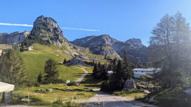 Jeder, der auf dieser 7,9 km langen Route mitwanderte, schrieb eine Zeile. Wir planten eine Pause auf einer Alm ein, wo wir zwar leider keinen Kakao, dafür aber ein leckeres Holunderskiwasser getrunken haben. Auf dem Rückweg grüßten wir alle, die uns entgegenkamen mit dem Spruch: „In Bayern grüßt man Gott, Grüß Gott”, obwohl wir in Österreich und nicht in Bayern unterwegs waren. Wieder auf der Hütte angekommen, planten wir einen kurzen Übungsklettersteig und packten unsere Rucksäcke mit dem entsprechenden Klettermaterial. Damit unsere Rucksäcke nicht zu schwer waren, zogen wir die Klettergurte, die Helme und das Klettersteigset direkt an der Hütte an. Am Klettersteig angekommen, haben wir nochmal alle wichtigen und grundlegenden Dinge besprochen, bevor wir los sind. Der Klettersteig dauerte eine halbe Stunde und enthielt sowohl schwere als auch leichte Elemente. Um uns auf schwierigeren Klettersteige vorzubereiten, übten wir das Nachsichern. In einer Feedbackrunde haben wir die schwierigen Situationen nochmals besprochen, um anschließend mit neuen Erfahrungen im Gepäck wieder zurück zur Hütte zu gehen. Eine Ofenkartoffel mit Quark und Ofengemüse war der schöne Abschluss dieses Tages. Den restlichen Abend ließen wir mit allen bei einer Runde “Werwolf” ausklingen.