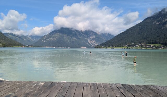 An einem besonders warmen Tag wanderten wir zum Achensee, wo wir uns bei bestem Wetter im klaren Wasser erfrischen konnten. Das Baden bot eine willkommene Abwechslung zu den sportlichen Herausforderungen und ließ uns neue Energie tanken.