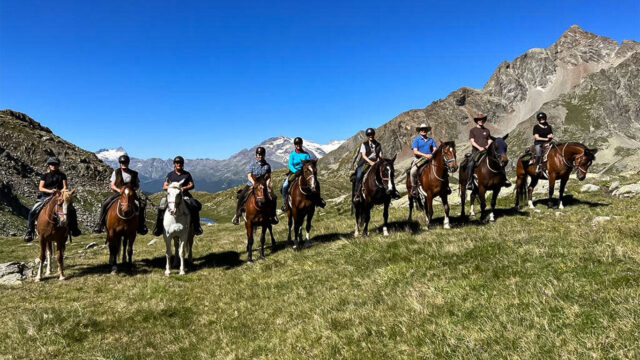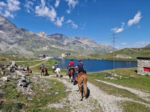 Bun di Men!“ – „Hoi Ruedi!“ – „Allegra Marcello!” Seit einem Jahr hatten wir uns nicht mehr gesehen und nur noch per E-Mail und WhatsApp Kontakt gehabt. Jetzt treffen wir uns wieder in San Jon im Unterengadin und freuen uns auf unsere diesjährige Reittour. „Wir“, das ist eine Gruppe von 8 Schweizer Reiterinnen und Reitern, meine Person („Quotendeutscher“ aus dem Rhein-Main-Gebiet, wohin es mich einst von Aachen her verschlagen hat) und unser Rittführer Men, die schon seit mehreren Jahren immer im Sommer Wanderritte in den Alpen unternimmt.