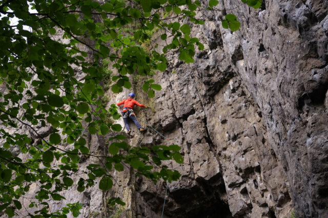 In Kelmis angekommen, die nächste Überraschung: Der Fels war anscheinend nicht spontan reserviert worden! Also mussten wir uns unseren eigenen Platz suchen. Auf dem Programm stand heute anstatt Klettern: Aufstieg am Geländer/Fixseil und Abseilen vom Felsen. Mit Vorübungen und einem soliden Aufbau haben wir das Ganze ganz gut geschafft.