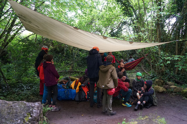 Am Samstag ging es trotzdem früh zum Felsen, wo wir auch einige Klettermeter sammeln konnten, bis uns der Regen dann doch noch einholte. Pünktlich um 13 Uhr kam der bestellte Monsun und ertränkte unser gemütlich eingerichtetes Lager am Felsen.